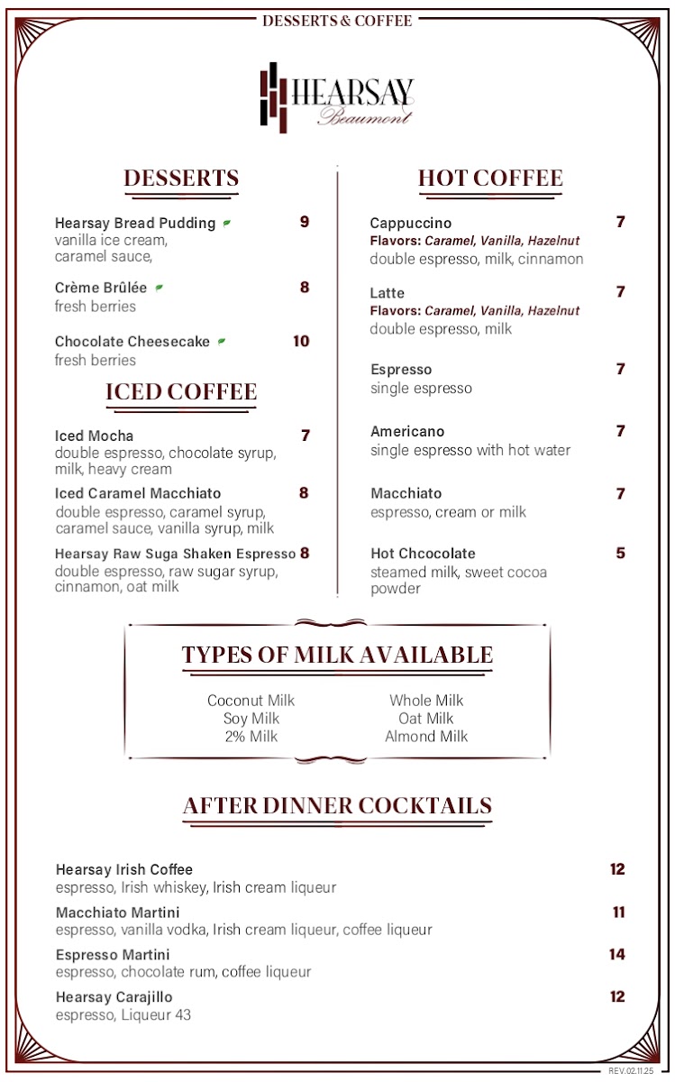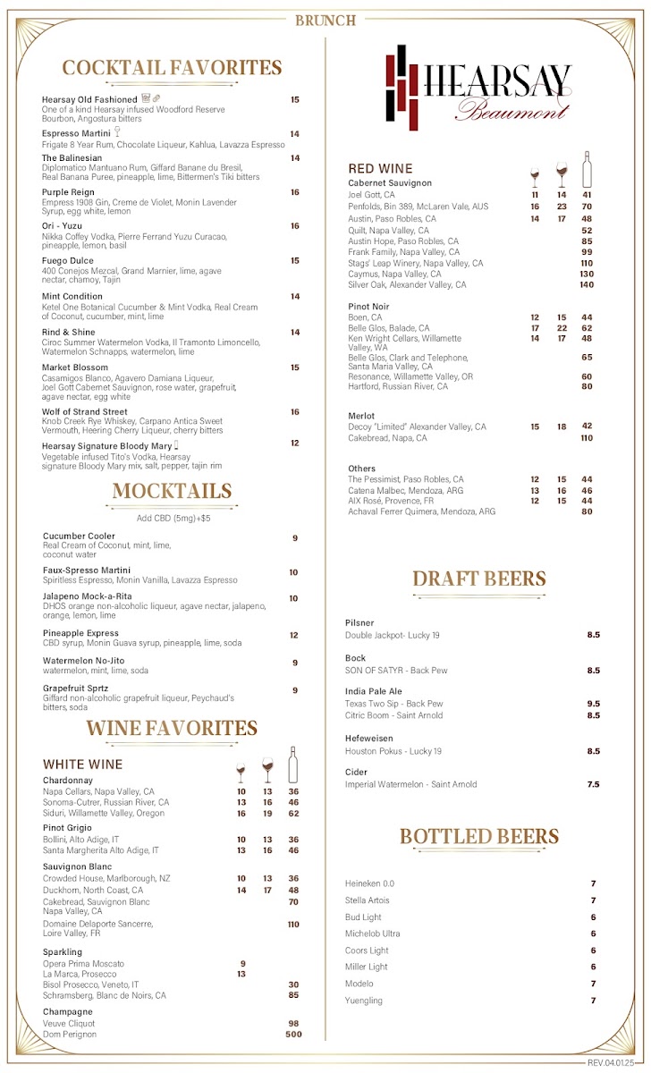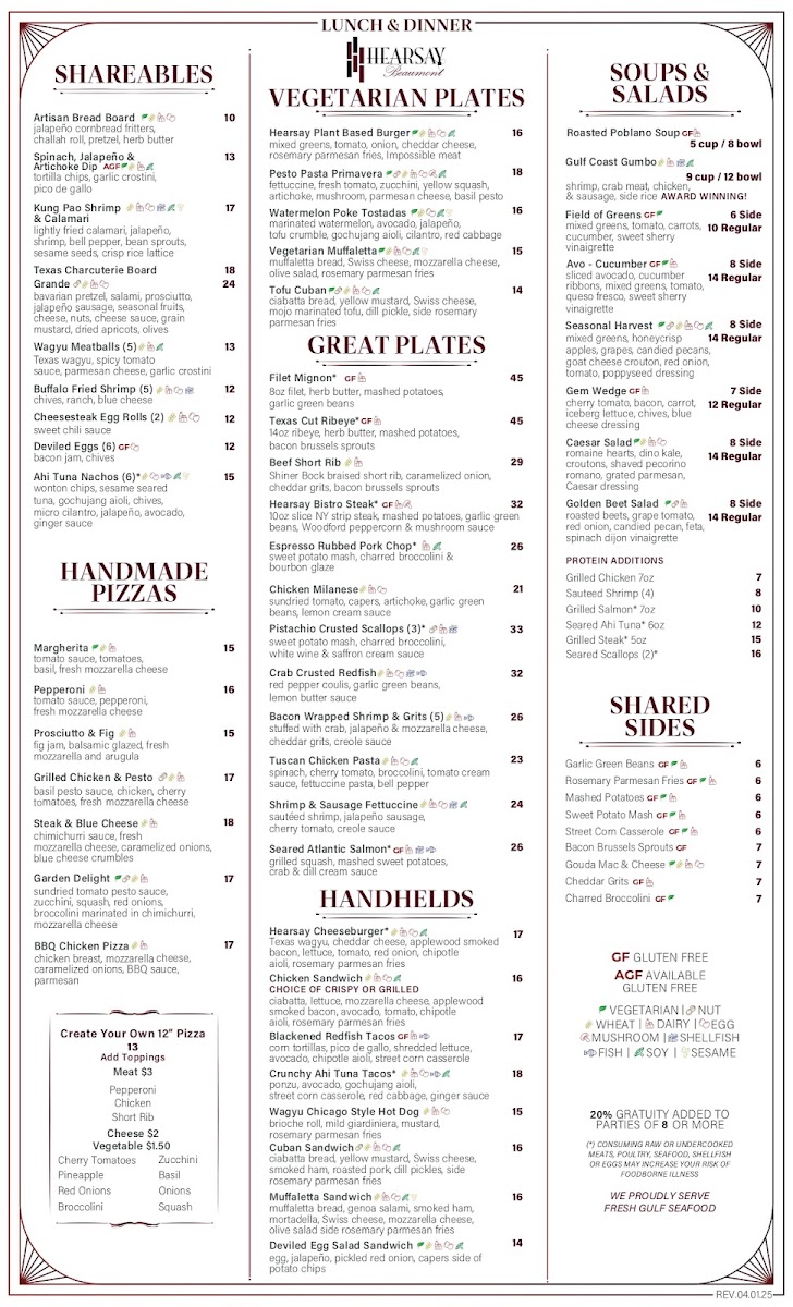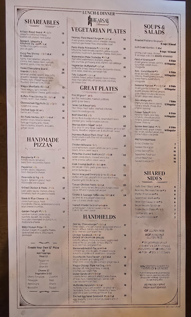 Hearsay Beaumont Menu (Update 2025)